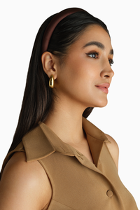 Featuring Espresso Silk Headband by Refined Revolution. Designed with a refined grosgrain lining for secure hair placement. Its padded frame ensures comfort, offering a versatile fit in one size.