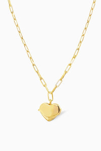 Cherish your precious moments with the Eternal Love Heart Locket. This elegant piece, crafted in vermeil gold, features a classic heart silhouette that opens up to hold a cherished memory or keepsake. Designed with smooth, polished surfaces for a timeless look, this locket is suspended on a delicate paperclip chain, adding a modern touch to its traditional charm. Perfect as a heartfelt gift or a personal statement of love, this piece is an exquisite blend of sentimentality and style.