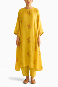 Featuring a Habutai kurta in floral print paired with Silk pants.