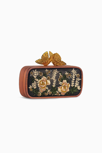 The clutches are not only glamorous and innovative, but also extremely versatile with a mix of wood, leather and detailed handwork. The Metal Knob makes it a statement piece.