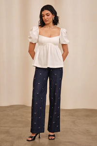 Comfortable, embroidered, and endlessly wearable — these straight-leg statement jeans are cut for movement and an understated edge, pair it with a white shirt or tank for an easy elegant look
