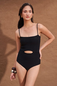 Meet the Eza Black One Piece, designed for sculpting comfort with premium Compressive Fabric. Featuring a stylish square neckline and elegant cut-out detailing, this one-piece offers thin straps for a sleek silhouette while providing full coverage at the bottom. Perfect for beach days or poolside lounging, it combines fashion and functionality effortlessly!