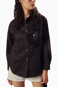 Elevate your wardrobe with this Fallon Embroidered Shirt in color White, exquisitely crafted to exude sophistication and timeless elegance. Designed with meticulous attention to detail, this shirt combines comfort with a heavily embroidered floral patch detailing, making it more feminine and a versatile staple for any occasion.