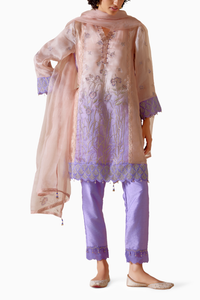 Composition- Kurta: 100% Organza and Tissue, Dupatta: Organza, Pants: Viscose Silk