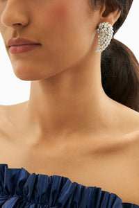 Add luxury & class to your wardrobe with this stunning pair of feather stud long earrings set in silver and clear crystals. Delicate yet make a statement. Wear it to complement anything from elevated denim edits to evening attire.