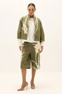Tailored in cotton twill, the Fennel Culottes feature oversized ivory botanical prints set against a muted sage green base. With a structured waistband, side pockets, and a mid-calf length, they offer a clean yet relaxed silhouette that moves with ease. Pair them with the Fennel Jacket for a coordinated statement look.