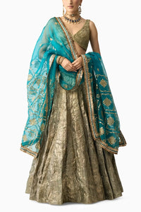Composition: Lampi, Silk Organza Lining: Cotton, Shantoon Color: Turq Silver Closure: Back Hook And Side Zip Components: 3 Product Code: SVEITRHC001