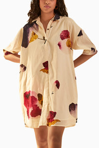 An easy shirt dress crafted to bloom, adorned with a floral print with a front button opening, for the season's glee. Crafted in soft cotton mul.
