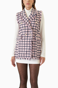 Flamingo Pink Tweed Gilet Tweed