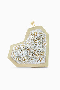 A geometric heart metal frame adorned with opulent metal flowers, pearls and beads. Big blooms and small add to the bag’s glitz and glamour. Carry your essentials seamlessly without dimming your sparkle. Each design is made to match your festive ensembles and elevate your casual fits.
