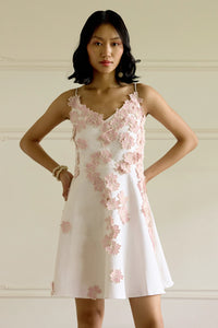 Featuring a fit-and-flare silhouette, the Floral Appliqué Dress is a strappy short dress adorned with organza flower patches all over. Light and charming, it offers a graceful flow and delicate detailing, perfect for adding a touch of whimsy to your warm-weather wardrobe.