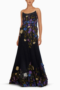 This stunning floral embellished fishtail gown is carefully crafted in a soft tulle base with floral details including 3D elements and sequins, making it the perfect wedding season ensemble