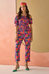 Discover effortless elegance with our Floral Print Co-ord Set. The top features charming smocking detailing that adds a playful touch, while the matching slim fit pants create a polished look. Perfect for any occasion, this set combines comfort and style, making it a must-have addition to your wardrobe!