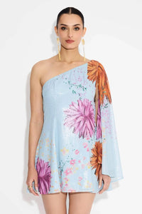 Featuring SHA Floral One Shoulder Sequin Dress by Shasha Gaba, this frost-colored dress is crafted from transparent poly sequin fabric. Perfect for pret wear, its one-shoulder design and shimmering floral details create a bold and elegant Indo Western statement for special occasions.