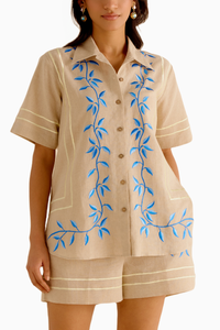 Step into summer with effortless style in our linen short set with delicate embroidery. Crafted for comfort and charm, perfect for sunny days and casual outings.