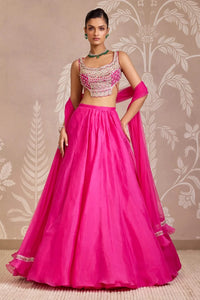 Featuring Floret Opulent Lehenga Set by Ridhi Mehra's In the Folds Summer Collection '25. This luxurious lehenga set includes an allover embroidered net back tie-up blouse, paired with a solid organza skirt and a net dupatta adorned with embroidered borders and ruffles on both sides. A perfect fusion of intricate detailing and timeless elegance.