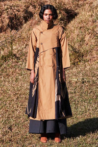 This unique beige and charcoal grey trench coat is designed to stand out while offering both warmth and style, an ideal piece for the winter season. With sleek side seam pockets for practicality, it combines a contemporary color palette with classic trench details, making it a versatile addition to any wardrobe. Perfect for layering over both casual and dressier outfits, this coat offers a refined yet cozy look.