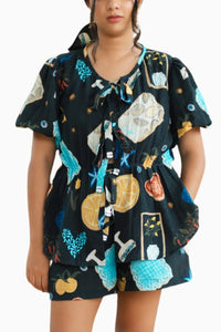 The Found Her Sugar Tier Up Top is a printed front tie-up top with playful puffed sleeves, blending flirty style with a touch of vintage charm. Its tiered design adds dimension and movement, while the tie-front detail offers an adjustable, figure-flattering fitperfect for elevating any casual look.