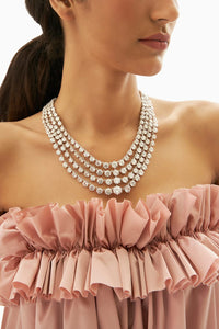 Sophisticated and glamorous, this jewel coils around the neck striking with the precious beauty of four line necklace in white round shape.
