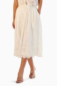 Introducing the Freya Set that is a perfect blend of elegance and versatility. This shirt-and-skirt set comes in three stunning variations: Landscape and Flora, both featuring vertical lace inserts and vibrant placement prints on breathable linen lyocell, and a classic Schiffli Embroidery design on soft viscose linen. Each sleeveless shirt is thoughtfully designed with criss-cross dori detailing at the front, adding a playful yet refined touch.