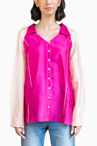 Featuring Fuchsia & Baby Pink Nova Shirt by URAIB. Tailored from luxurious Chanderi fabric, this shirt combines the vibrant hues of Fuchsia and Baby Pink for a chic and statement-making ensemble.