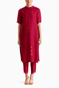 Brighten your collection with our Fuchsia Tunic, crafted from soft gauze linen and featuring exquisite carnation machine embroidery. Paired with elegant silk chanderi pants, this chic set combines comfort and style effortlessly. Perfect for both casual and formal occasions, it showcases a vibrant hue and beautiful detailing that will make you stand out. Elevate your wardrobe with this stunning ensemble!