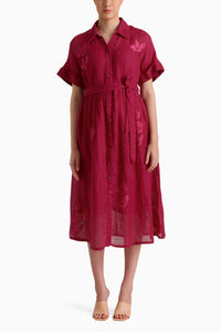 Fuchsia Drop Shoulder Carnation Embroidered Dress