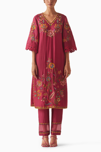Fuchsia Embroidered Kurta With Organza Detail Pants