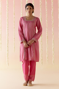 Fabric- Kurta: Crushed Tissue, Pant: Chanderi Color- Fuchsia Rose Components- 2 Product Code- SVENEROGMKS16