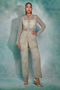Featuring a fully embroidered shirt paired with sleek cigarette trousers and delicate tassel detailing, blending elegance with contemporary charm.