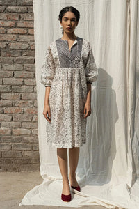 The drawstring dress is an ethereal creation, crafted from floral printed chanderi with a textured tape-detailed yoke. The perfect balance of effortless style, this timeless piece seamlessly transitions from an uptown soire to a laid-back caf in radiant style. Finished with handmade tassels for ease of wear, tie-up sleeves and neck, and side pockets, its sure to become a wardrobe favorite, offering both comfort and charm in every wear.