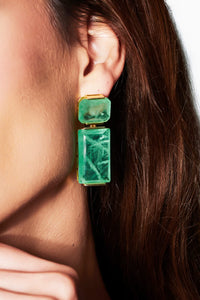 Add a modern edge to your look with these geometric dangler earrings, featuring bold shapes and vibrant colors. Set in gold plated, 92.5 Sterling Silver, the semi precious gemstones, with their cool hues reminiscent of tranquil waters, are cut into bold, geometric shapes that exude modernity and confidence.