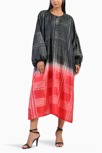 Featuring the Black and Red Geometric Shibori Dress, this piece is a striking blend of contemporary design and elegance. The dress boasts a stunning geometric Shibori pattern in bold black and red hues, while the graceful balloon sleeves add a touch of sophistication and flair. This gorgeous dress combines artistic visual appeal with a chic silhouette, making it an ideal choice for making a memorable statement at any special occasion.