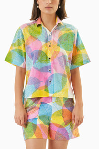 Introducing Whispering Leaves relaxed fit shirt, a vibrant addition to your wardrobe that perfectly captures the essence of nature. This multi-colored shirt features a playful leaf pattern, making it ideal for casual outings or laid-back weekends. Paired effortlessly with shorts, its breathable fabric ensures comfort while keeping you stylish.
