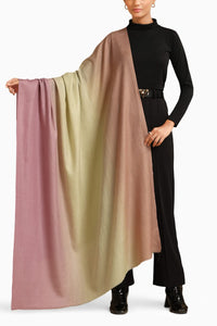 Introducing our Gia ombre shawl, crafted with cashmere fine wool. This exquisite piece exudes elegance and sophistication, perfect for any occasion.