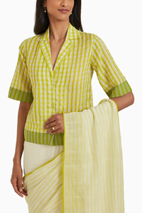 Gingham Lime Fine Silk Khadi Shirt Blouse