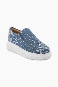 When it’s a night that celebrates love, even rain comes down as glitter. Crafted in denim and embellished with silver rhinestones, our Glitter Rain classic sneakers will dot your festivities with glamour and glee. Anaar’s chic styles are designed for footwear enthusiasts who are bored of the ordinary and are looking for something extra. Take your pick from our Cool Blues bunch and wear it to the next celebration on your calendar. The artisans of Anaar take 20 hours to carefully construct this pair.