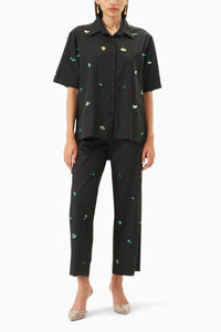 Featuring a cotton co-ord set with hand embroidery, this ensemble showcases artisanal detailing and breathable comfort, perfect for a refined yet relaxed look.