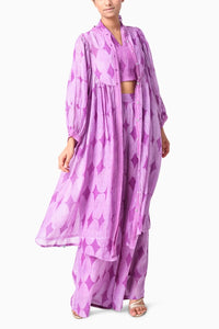 Make a statement with this coordinated set featuring a halter bralette styled under a button-down tunic, paired with relaxed elasticated pants. Crafted from matching printed fabric, this look blends comfort and bold fashion—perfect for brunches, getaways, or laid-back festive moments.