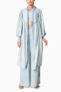 Make a statement with this coordinated set featuring a halter bralette styled under a button-down tunic, paired with relaxed elasticated pants. Crafted from matching printed fabric, this look blends comfort and bold fashion—perfect for brunches, getaways, or laid-back festive moments.