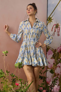 Introducing our Ikkat Print Flared Dress, featuring a charming button front opening that adds a touch of elegance. This flattering silhouette is beautifully cinched at the waist with a belt, enhancing your shape while showcasing the vibrant ikkat patterns. Perfect for any occasion, this dress combines style and comfort effortlessly!