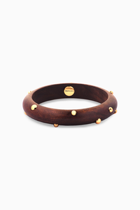 Introducing our GOLD BALL BANGLE - a wooden bangle adorned with shimmering gold balls! This quirky accessory will add a touch of playfulness to any outfit. Don't settle for ordinary bangles, go for the unique and stylish GOLD BALL BANGLE!