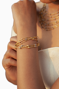 This elegant bracelet will make a timeless statement. Crafted from luxe gold plated brass and contrasted with leather elements, this chainmail bracelet is sure to be a conversation starter! Add a touch of sophistication and luxury to any look.