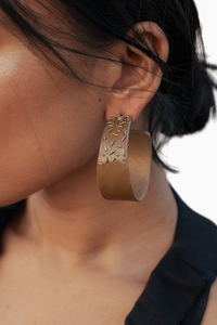 Add an understated glint of glamour to your day with these statement Gilded Hoops. Chunky yet lightweight, these flat hoops are beautifully embroidered with gold and gunmetal details, for a luxurious finish! Put the fun back into accessorizing!