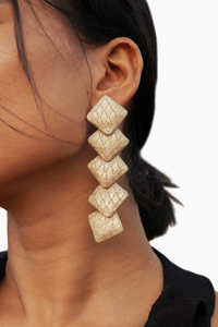 Get the perfect look with these stylish tex danglers! Featuring layered cubes and croco embossed leather, these dynamic dangler earrings are sure to turn heads. Make a statement with Tex danglers today!