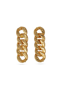Elevate your style with these gold link chain earrings, crafted from copper and brass with 22k gold plating. Their bold, contemporary design makes them a perfect statement accessory for any occasion, blending elegance with urban edge.