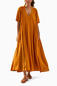 Gold Rush is ideal for fuss-free summer days, with its soft gathers and flowy silhouette crafted in soft cotton mul in mustard.