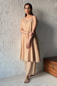 Composition: Sheer Metallic Silk & Cotton Slip Color: Gold Sand Fit: Relaxed Fit Components: 2 (Dress & Slip) Length: 41" Product Code: SVEKISHKMDR037/BLDR/SAND