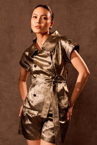 Our much-loved shacket now comes in a luxurious new fabric and stunning gold hue. Pair it with our matching gold pants for a chic, statement-making look.