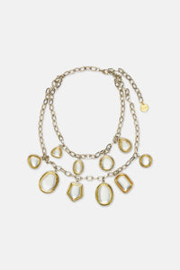 The Gold & Silver Polki Charm Necklace blends playful elegance with timeless craftsmanship. Made from copper and brass with a 22k gold or white rhodium finish, it features delicate charms accented by sparkling Polki stones, creating a versatile piece perfect for everyday wear or special occasions.